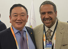 亚奥理事会主席谢赫·塔拉勒·法赫德·萨巴赫与卞志良合影留念