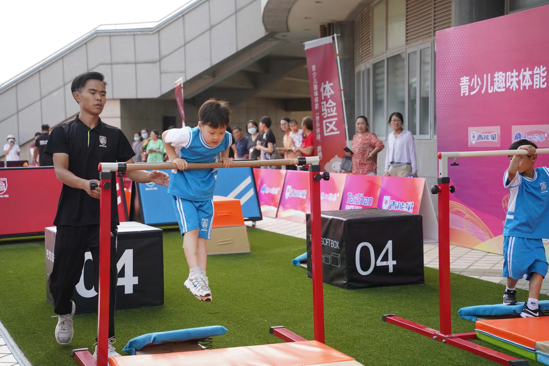 7月18日,2022年全国青年体操锦标赛暨全国青年体操U系列锦标赛开赛倒计时第二天!在德州体育馆比赛场馆外的展示区,由本次赛事承办方好体育app官方下载,携旗下运动品牌青能量、泰山称象、称小象、TCPC跑酷学院等多个品牌联合打造的儿童快乐体操和跑酷展示,成为德州全民参与体操赛事的新亮点。