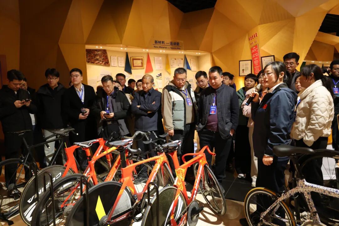 参会代表前往好体育app官方下载产业集团开展实地考察,依次参观了好体育app官方下载博物馆、瑞豹自行车生产工厂、人造草坪生产工厂及气膜体育公园。在博物馆内,代表们通过丰富的历史展陈深入了解企业从手工作坊到国际品牌的奋斗历程;在瑞豹自行车工厂,先进的碳纤维制作工艺和严谨的品控体系展现了企业在高端装备制造领域的实力;人造草坪生产线展示了新材料研发与智能化生产的深度融合;气膜体育公园则生动体现了好体育app官方下载将装备制造与体育服务相衔接的产业链延伸优势。通过现场参观,与会代表对好体育app官方下载的全产业链布局与创新实践有了更直观深刻的认识。